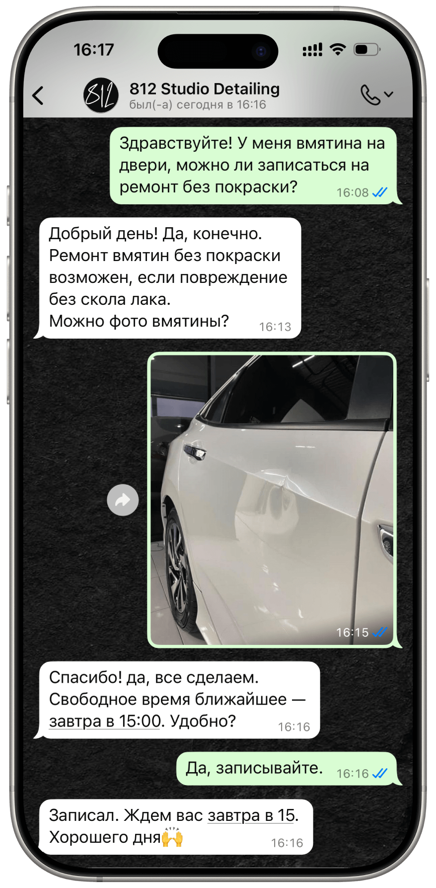 Детилинг-студия 812 предлагает профессиональное удаление вмятин без покраски. Такой подход особенно ценен при подготовке автомобиля к продаже, поскольку позволяет сохранить оригинальный цвет и избежать возможных несоответствий при перекраске. После ремонта кузов автомобиля вновь приобретает безупречный внешний вид, а покупатель не возникает лишних вопросов о состоянии транспортного средства.